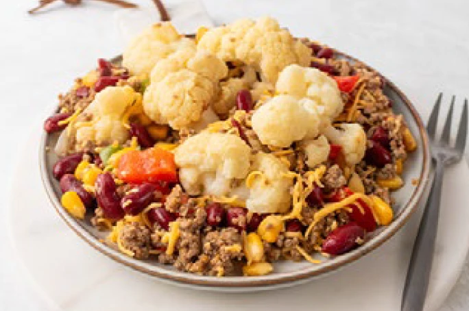 Cauliflower beef burrito bowl