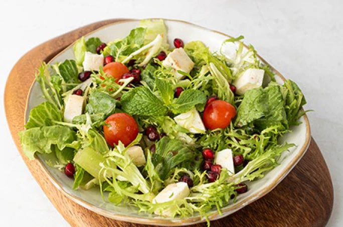 Frisee pomegranate halloumi salad